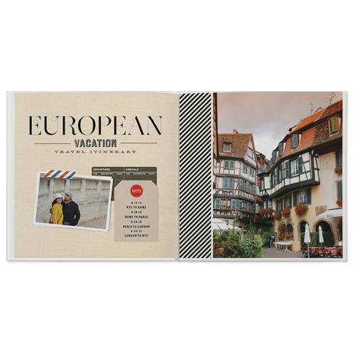 Capture the unique charm, beautiful vistas, and incredible experiences of a European Vacation with this premium style. Textured and damask patterned backgrounds combine with ornate typography and hand-drawn illustrations of famous sights throughout Europe to highlight and bring to life your family's photos. From Rome, to Paris, to London and beyond, this style lays the perfect foundation to showcase your once-in-a-lifetime adventure. This premium style is designed by Potts Design.