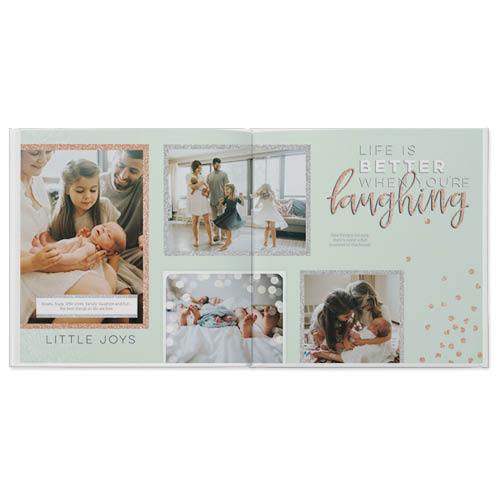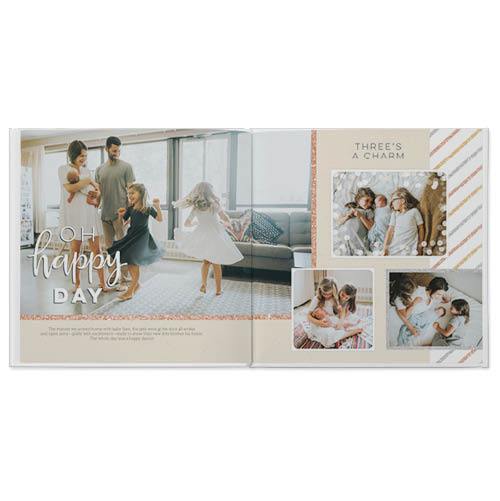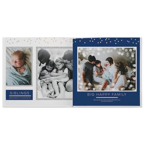 Make everyday moments sparkle with this dazzling photo book style. Cheerful polka dots and sweet stripes in gold and silver add shimmer and shine to every photo. Playfully chic brush script against brilliant backgrounds of bold matte navy and twinkling neutrals gives each page a sweet glow in this premium design by Yours Truly.