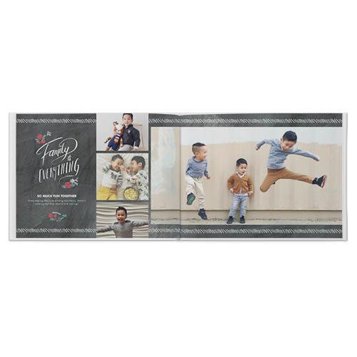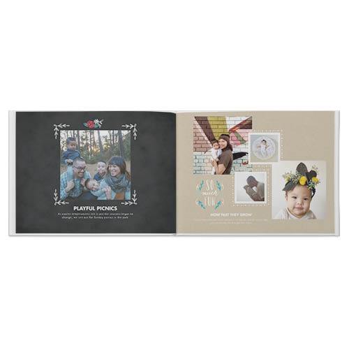 Hold on to your family's favorite memories with a premium photo book style perfect for all seasons. Hand-drawn motifs paired with pops of pastel colors against a chic chalkboard background, give everyday photos a fresh, artful look. This premium style was designed by pottsdesign.