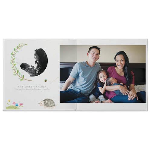 Savor all the sweetness of your family's newest addition with this charming photo book. The pages feature delightful watercolor illustrations of baby animals and forest flora. Simple layouts and quiet graphic backgrounds let your baby and family photos shine. This premium style was designed by Yours Truly.