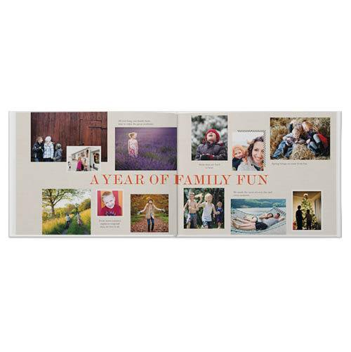 Capture the whole year in a book that reflects your family’s style. Muted hues with craft-inspired details and embellishments give this book a natural, organic look and really let your photos shine. Designed by Yours Truly.