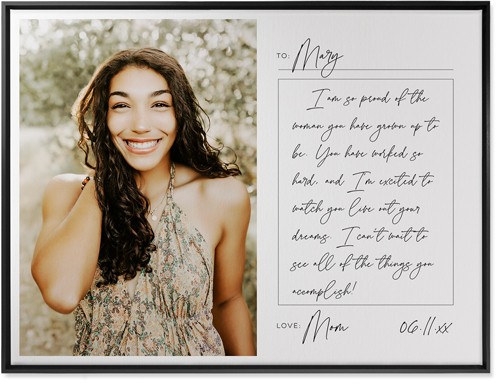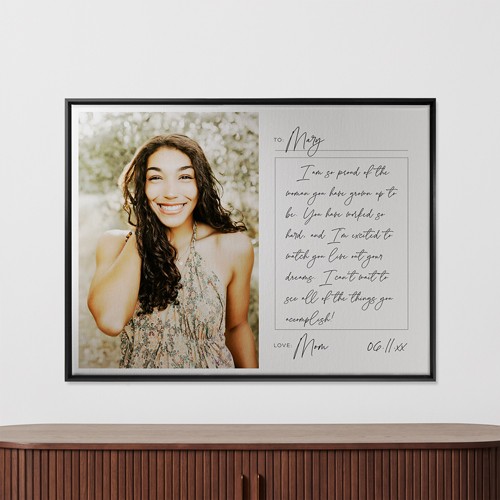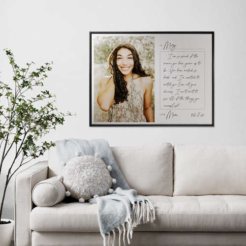 Turn your favorite memories into works of art and make your home your gallery. Create a high-quality canvas print for yourself or make a gift for a loved one to enjoy every day and for years to come. Available in a variety of sizes and frame colors so you can create the ideal wall art to work with any home décor.