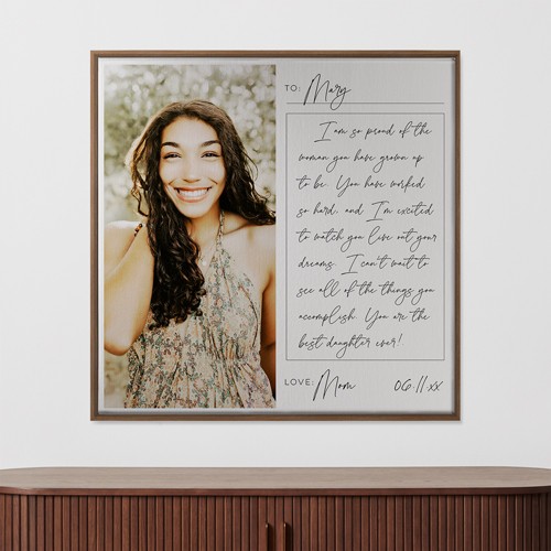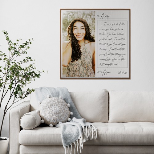 Turn your favorite memories into works of art and make your home your gallery. Create a high-quality canvas print for yourself or make a gift for a loved one to enjoy every day and for years to come. Available in a variety of sizes and frame colors so you can create the ideal wall art to work with any home décor.
