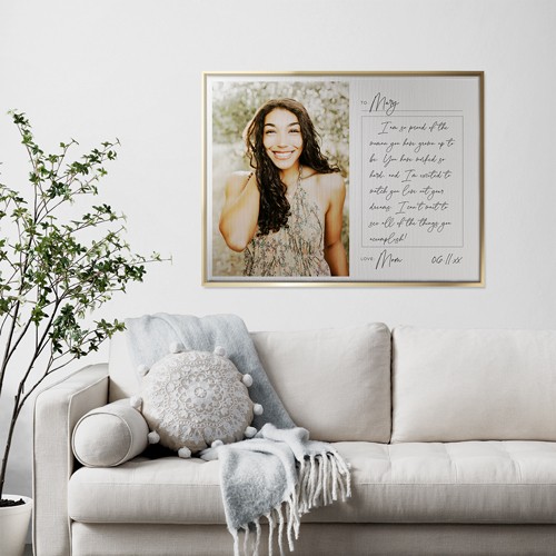 Turn your favorite memories into works of art and make your home your gallery. Create a high-quality canvas print for yourself or make a gift for a loved one to enjoy every day and for years to come. Available in a variety of sizes and frame colors so you can create the ideal wall art to work with any home décor.