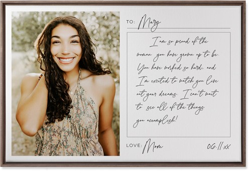 Turn your favorite memories into works of art and make your home your gallery. Create a high-quality canvas print for yourself or make a gift for a loved one to enjoy every day and for years to come. Available in a variety of sizes and frame colors so you can create the ideal wall art to work with any home décor.