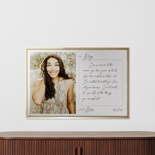 Turn your favorite memories into works of art and make your home your gallery. Create a high-quality canvas print for yourself or make a gift for a loved one to enjoy every day and for years to come. Available in a variety of sizes and frame colors so you can create the ideal wall art to work with any home décor.