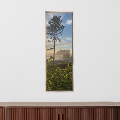 • Ready to Hang: Unframed has a slotted hanging block on the back. Framed options include metal sawtooth hanger