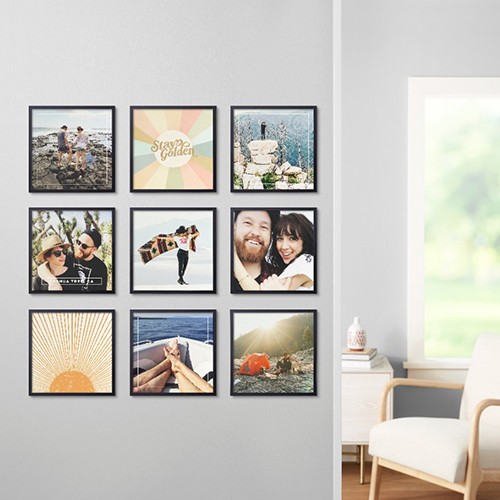 Create a hassle-free photo gallery wall with repositionable, lightweight framed photo tiles. The double-sided adhesive allows you to hang and rearrange with ease. No nails or holes required, and no sticky residue! Print multiple tiles and reposition for a constantly evolving photo wall.