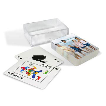 Whether it’s your best poker face—or your child’s bright smile—it’s fun to play with personalized cards. This set of poker-size Playing Cards comes in a hard case and makes a great party favor.