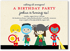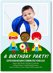 Superheroes & Adventure Square 1st Birthday Invitations