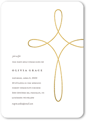 Gold Foil Portrait First Communion Invitations